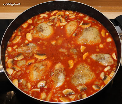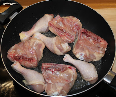 vízzel, belehelyezzük az elősütött csirkecombokat, majd az