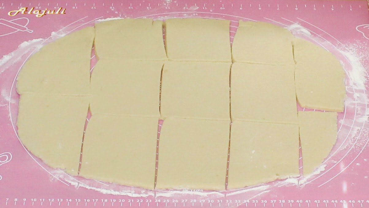 kihűlt, hozzáadjuk a lisztet és összegyúrjuk. Kinyújtjuk a tésztát egy