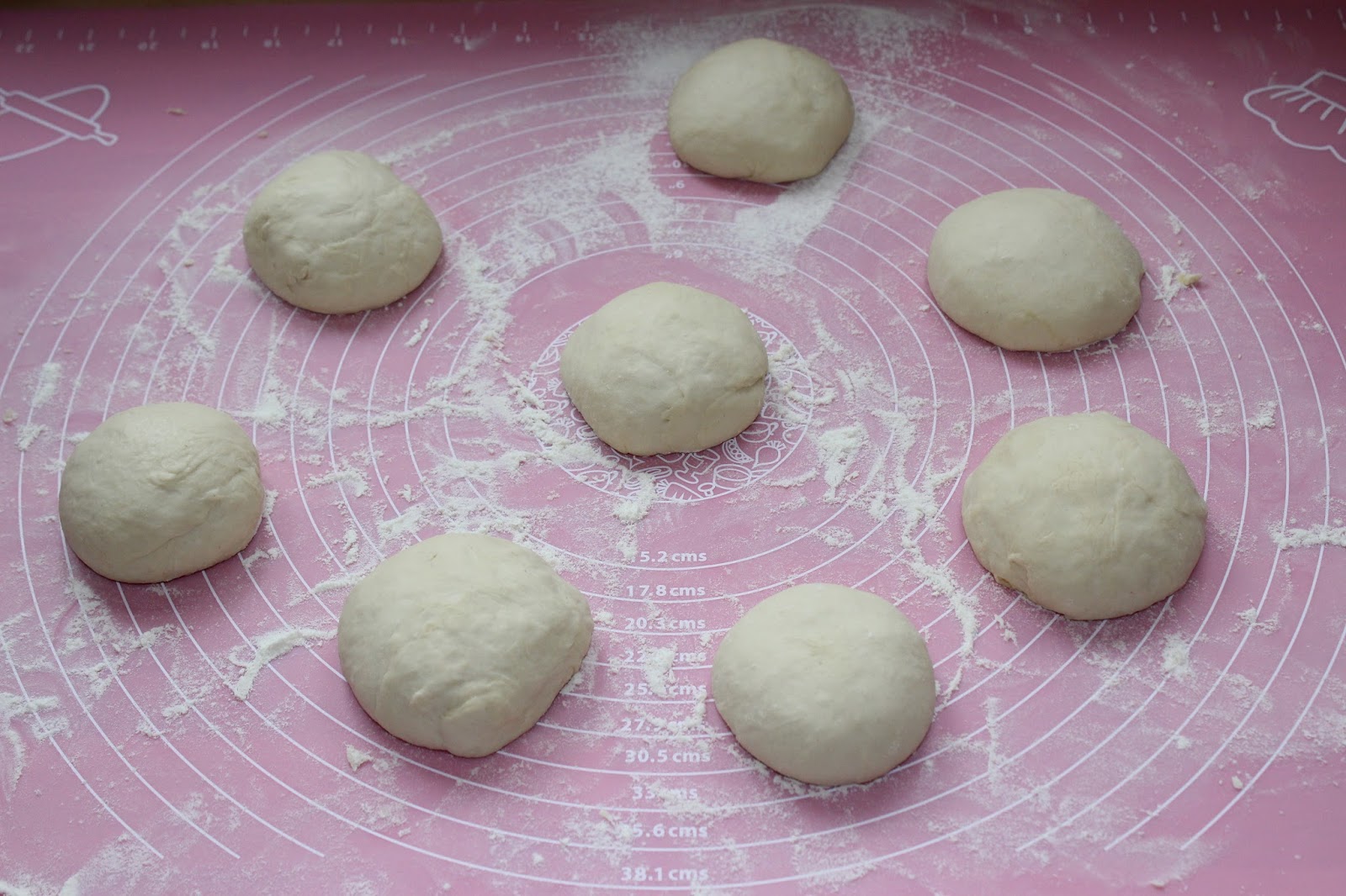 köröket nyújtjuk belőlük, majd letakarva még 15 percig kelesztjük.