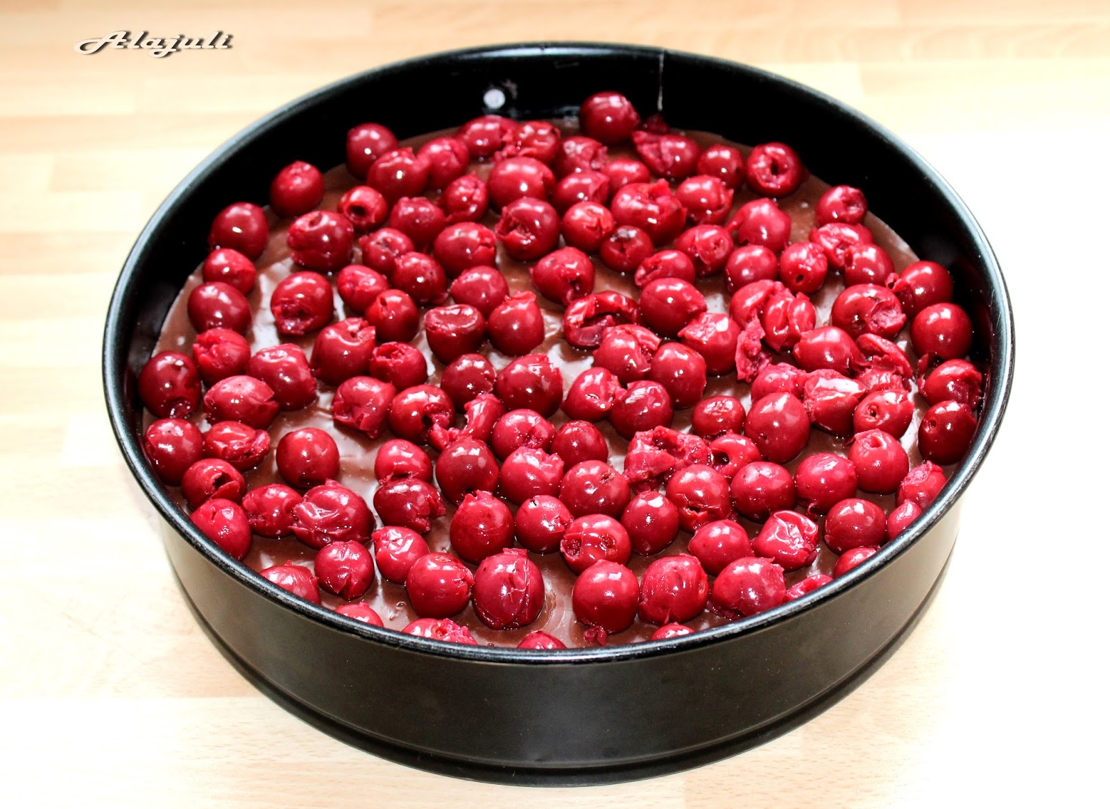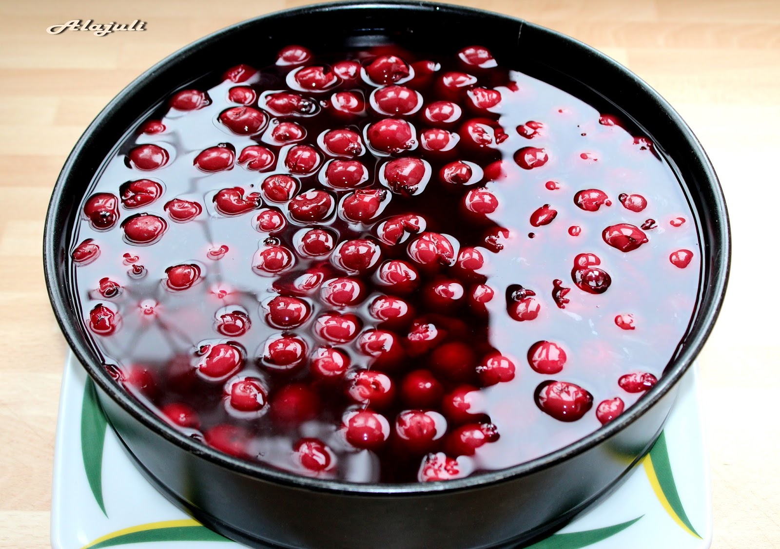 kellően kihűlt, a pudingot rásimítjuk a piskótára, és megszórjuk a meggyel. Én