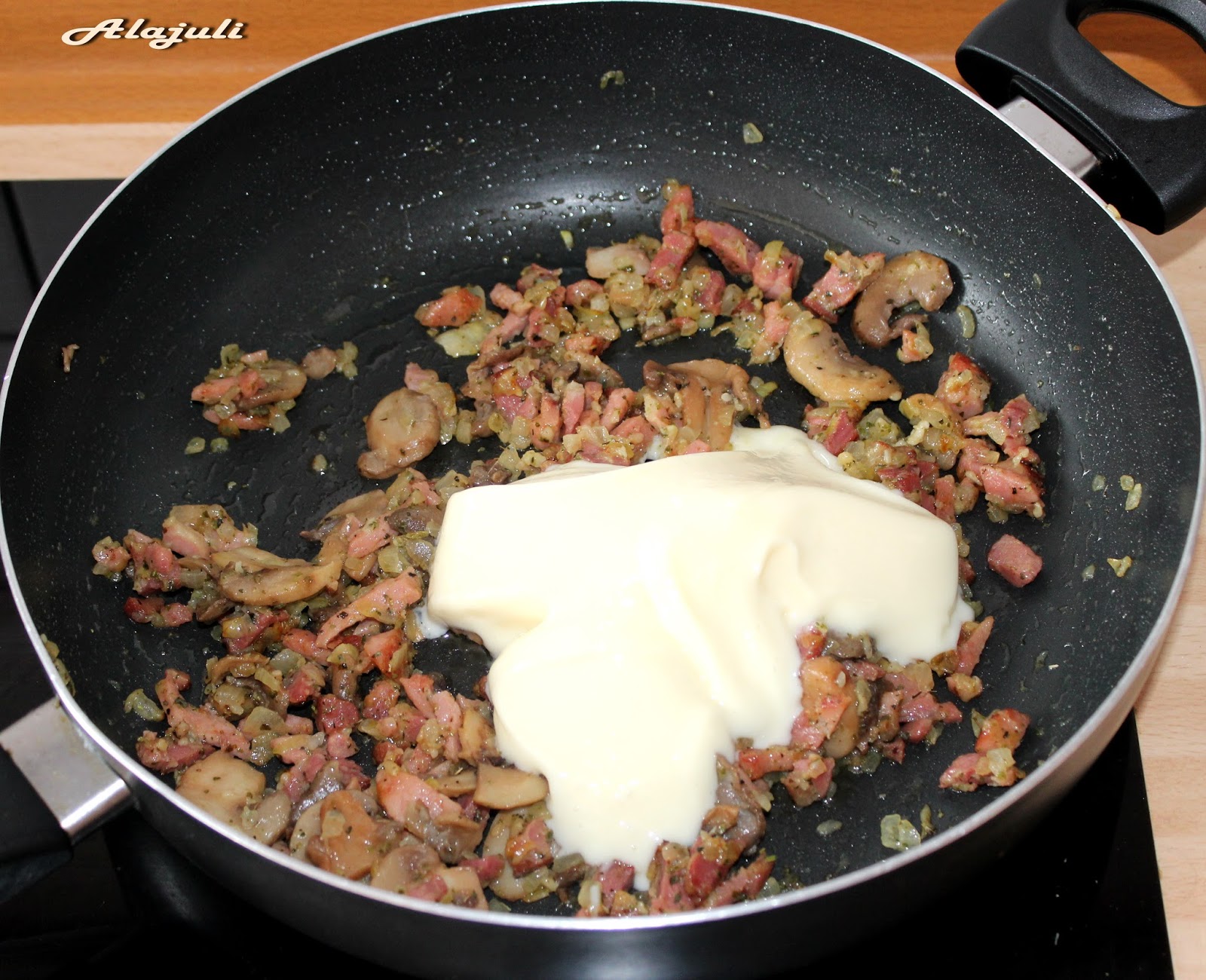 belekeverjük a tésztát és azonnal tálaljuk.