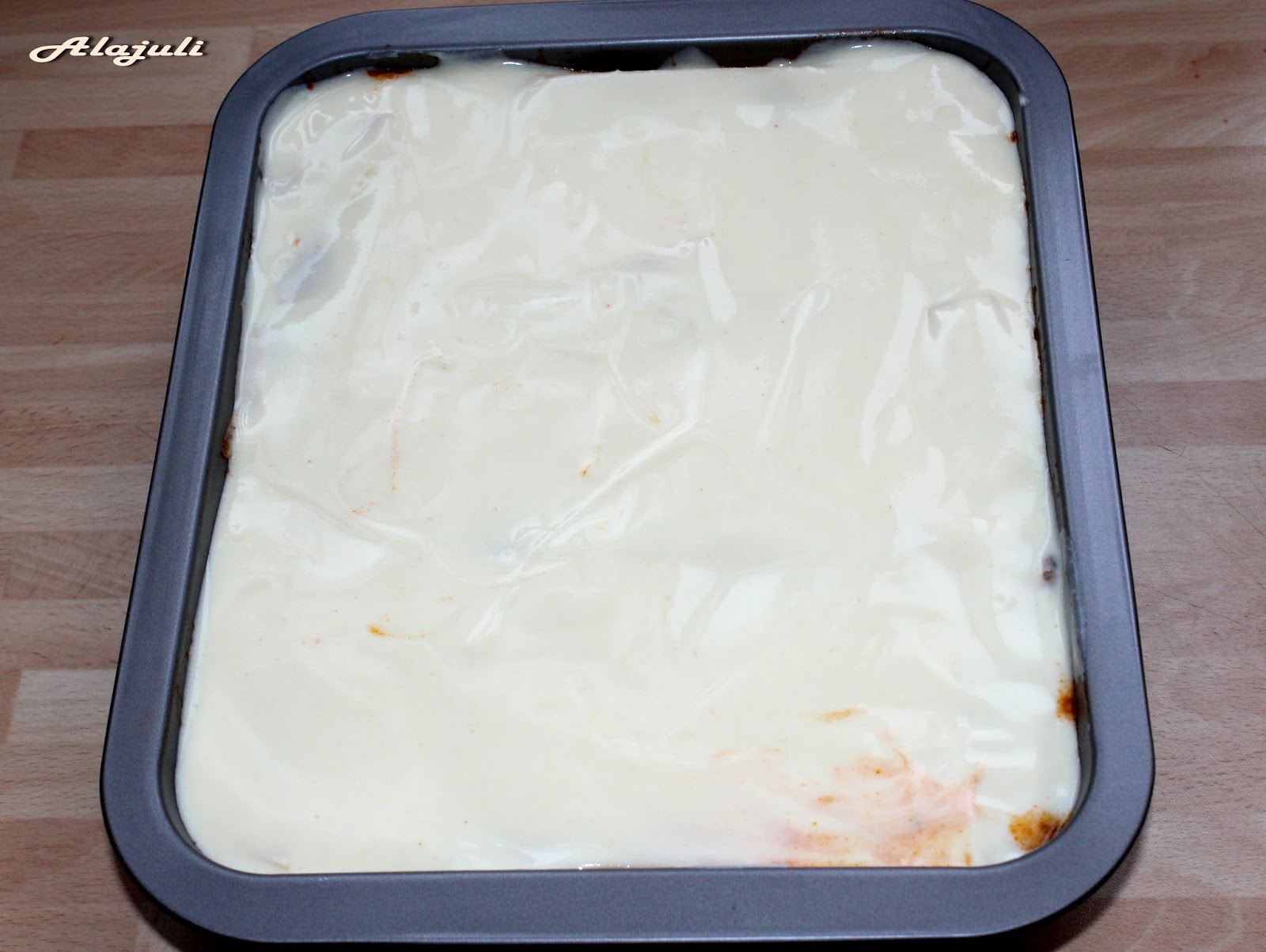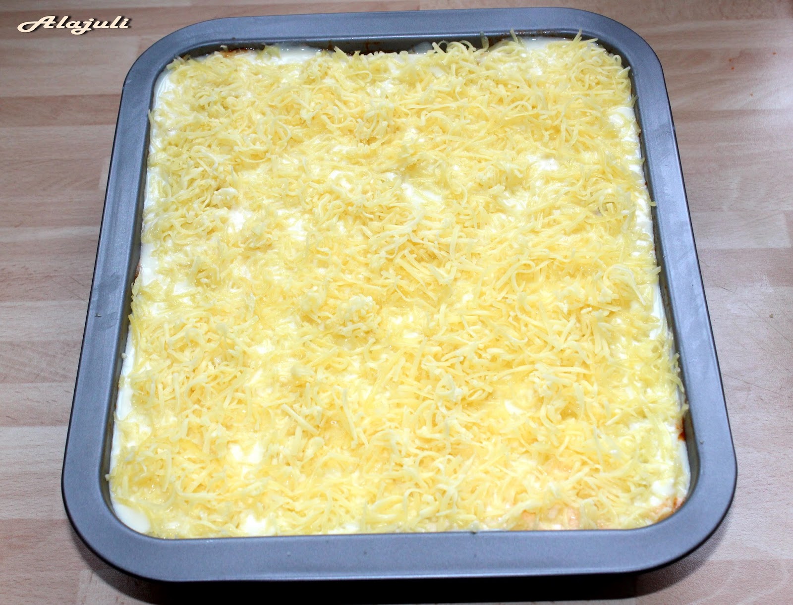 tartanak az alapanyagok, és belefér a tepsibe J. A legfölső réteg tészta legyen, mert
