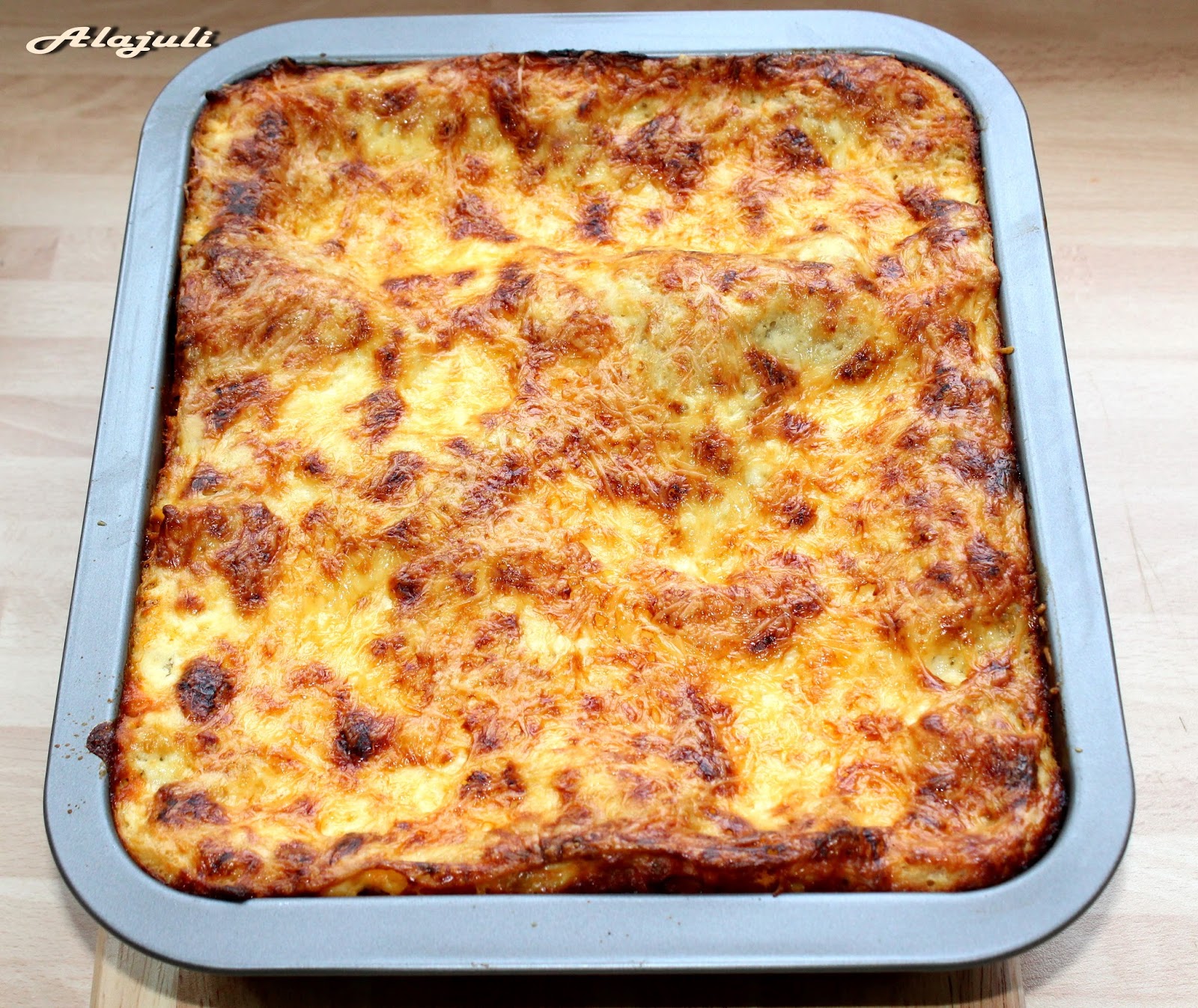 a ragu, összeállíthatjuk a lasagne-t. Egy magasabb falú tepsi aljába kanalazunk