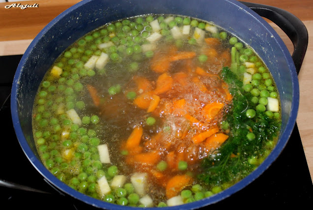 minden puha, beletesszük a tésztát és azt is megfőzzük benne.
