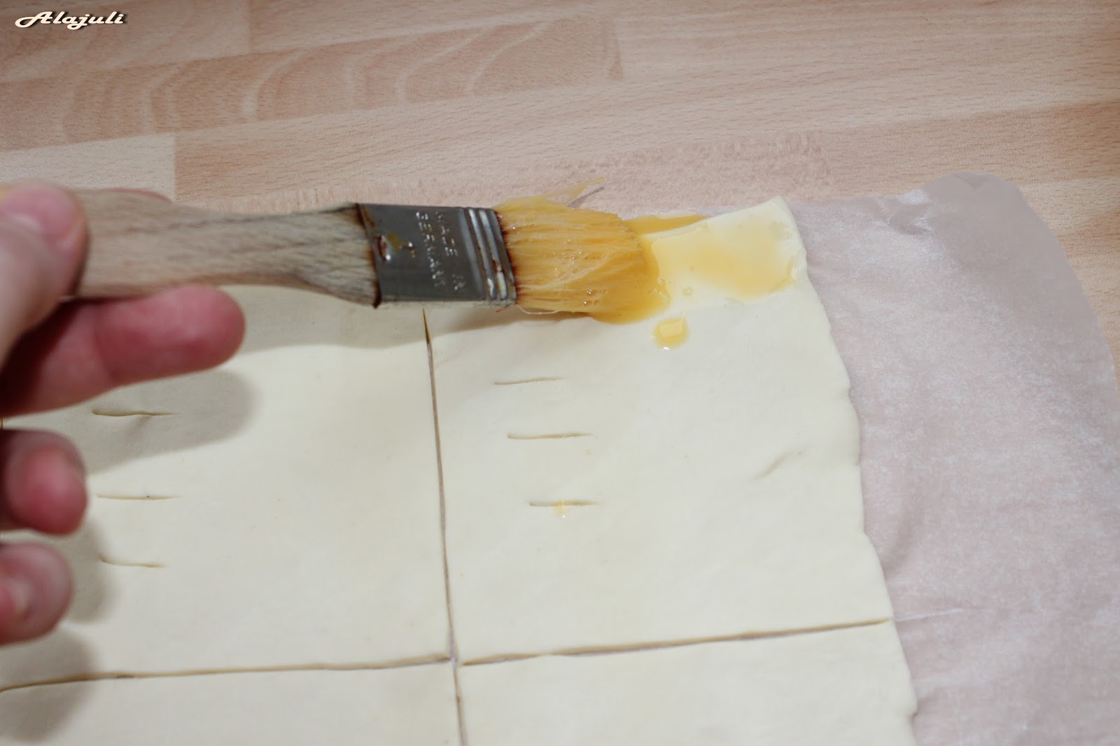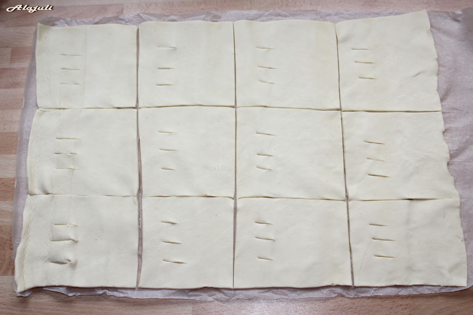 leveles tésztát kinyújtjuk, majd 12 részre vágjuk. A