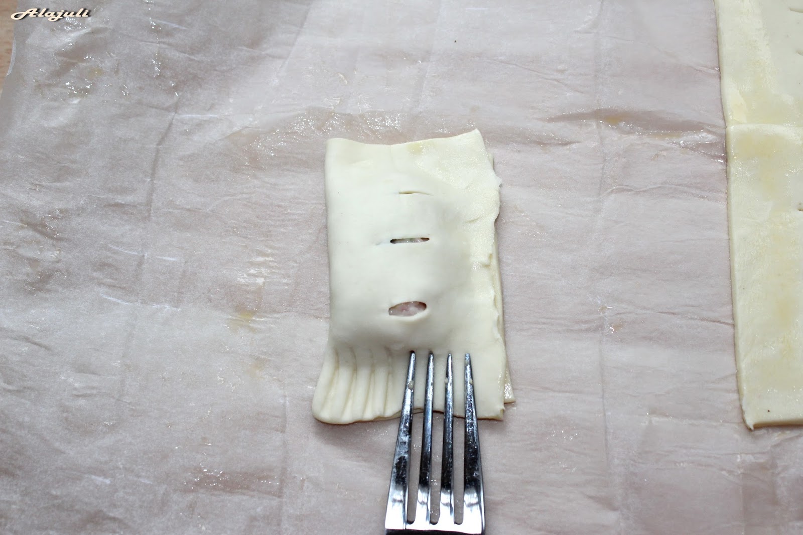 villával megnyomkodjuk a tészta széleit, hogy sütés közben ne