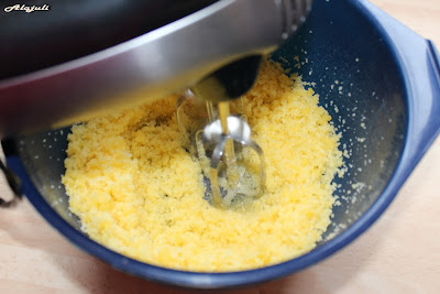 pillecukorhoz adjuk a porcukor felét, alaposan összekeverjük.