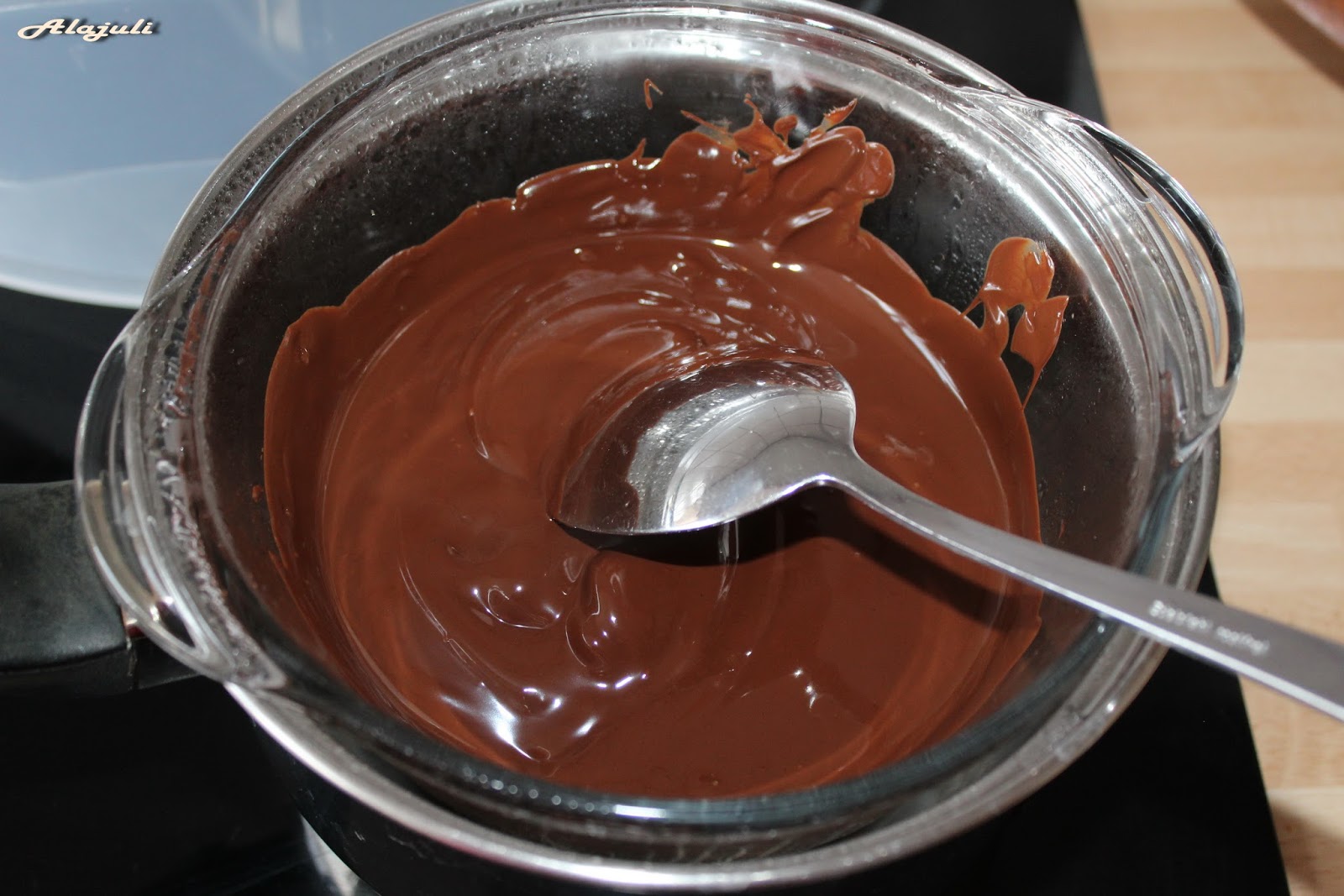 A csokit vízgőz felett felolvasztjuk. 5 percig hagyjuk