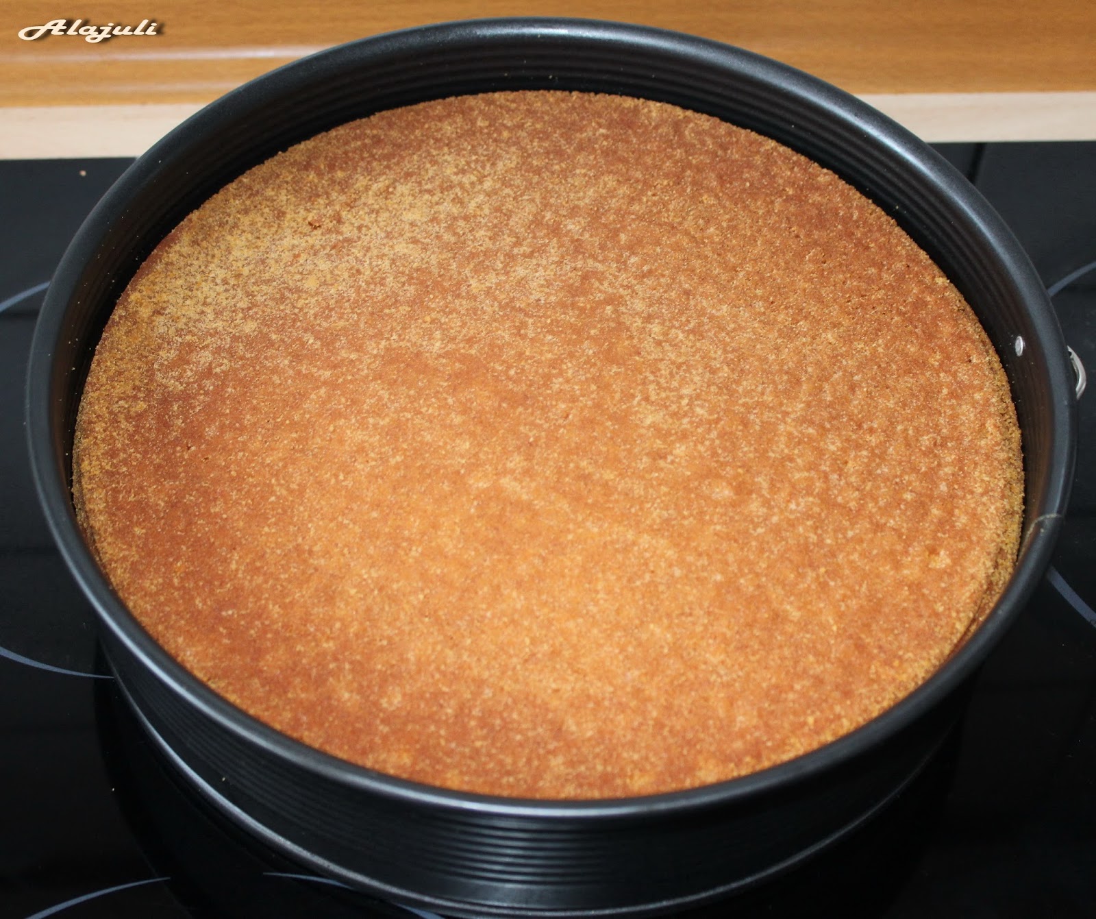 Amikor kihűlt a piskóta, megfordítjuk, hogy az alja legyen felül.