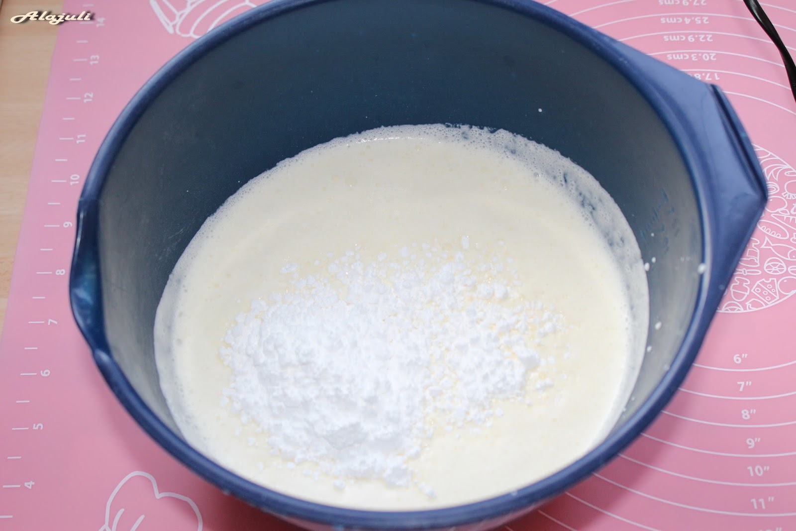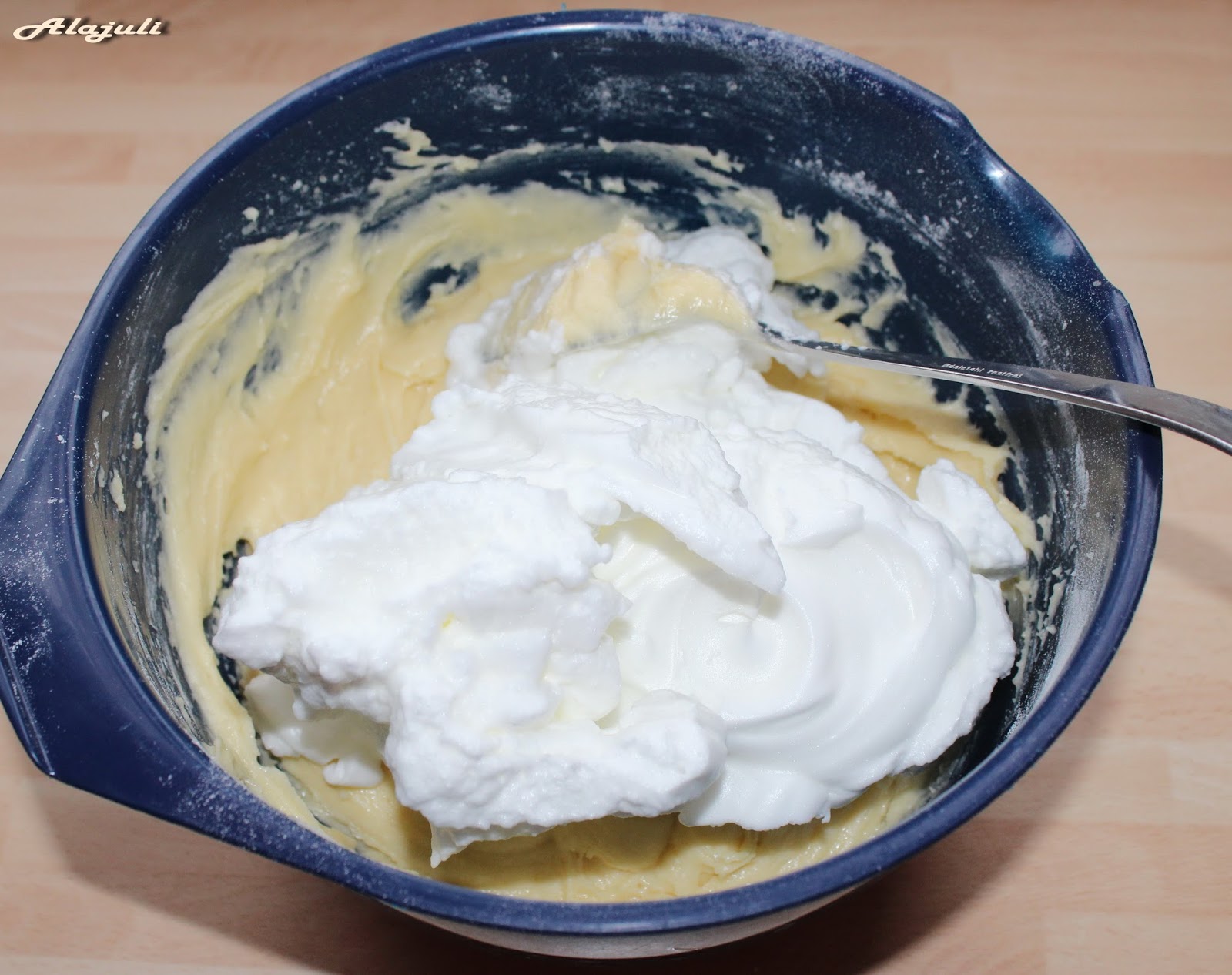 a lisztet és a sütőport, majd alaposan összekeverjük.