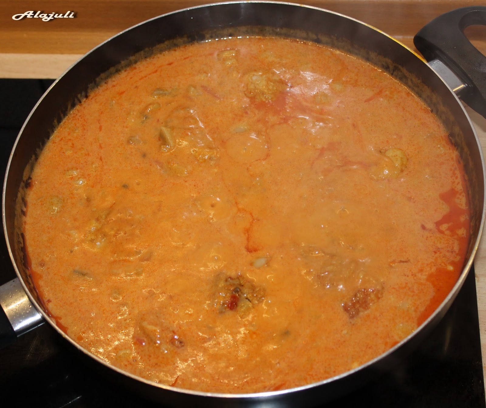a forró szaftból kanalazunk hozzá, majd a mártáshoz keverjük.