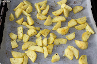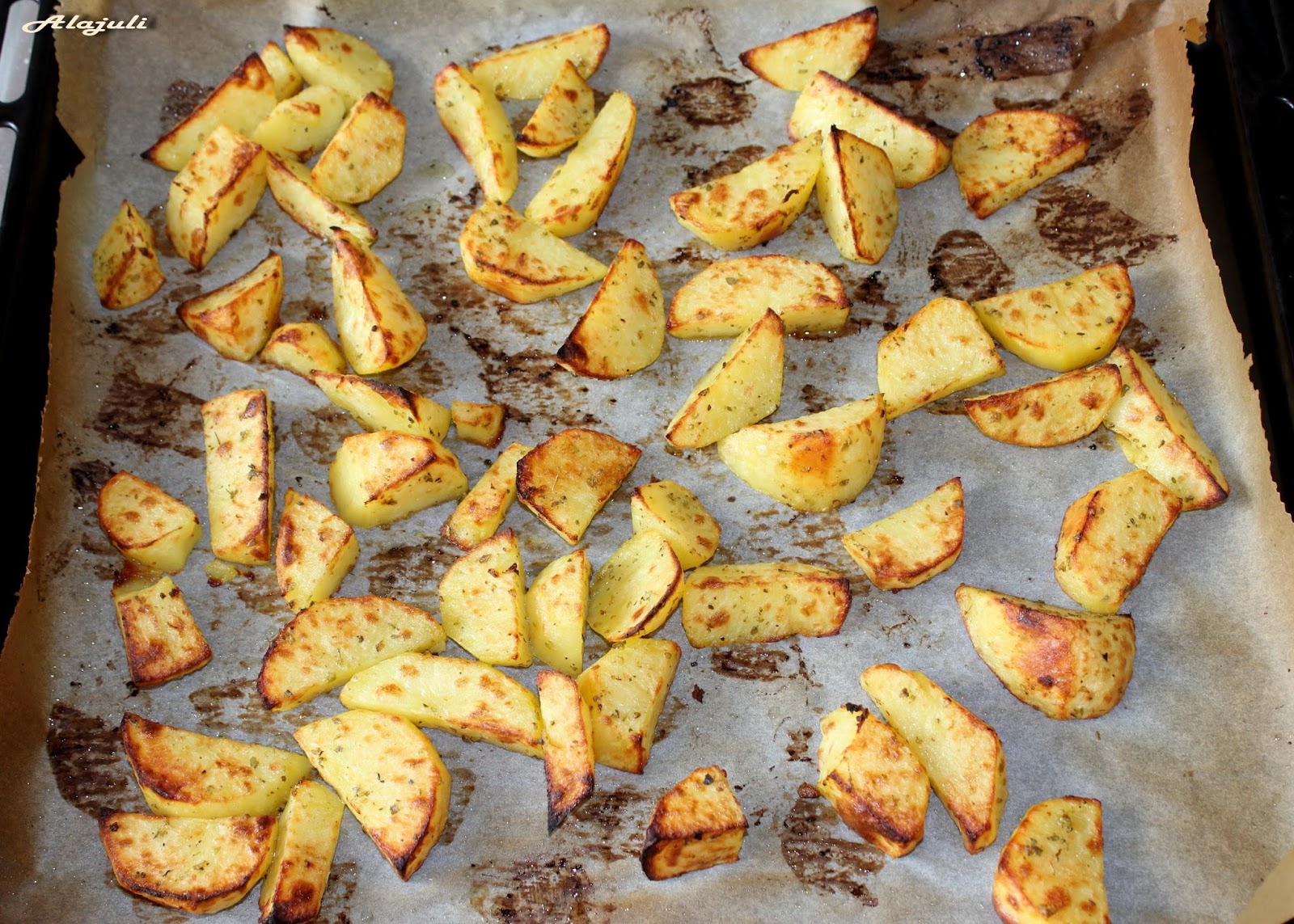 burgonyát sütőpapírral bélelt tepsibe tesszük, majd