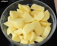 burgonyát meghámozzuk, megmossuk. Félbe vágjuk, majd cikkekre