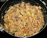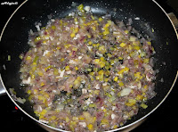 hagymákat apró kockára vágjuk, majd elkezdjük pirítani az
