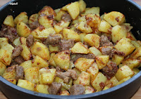 a burgonya elkészült, összekeverjük a hússal és azonnal