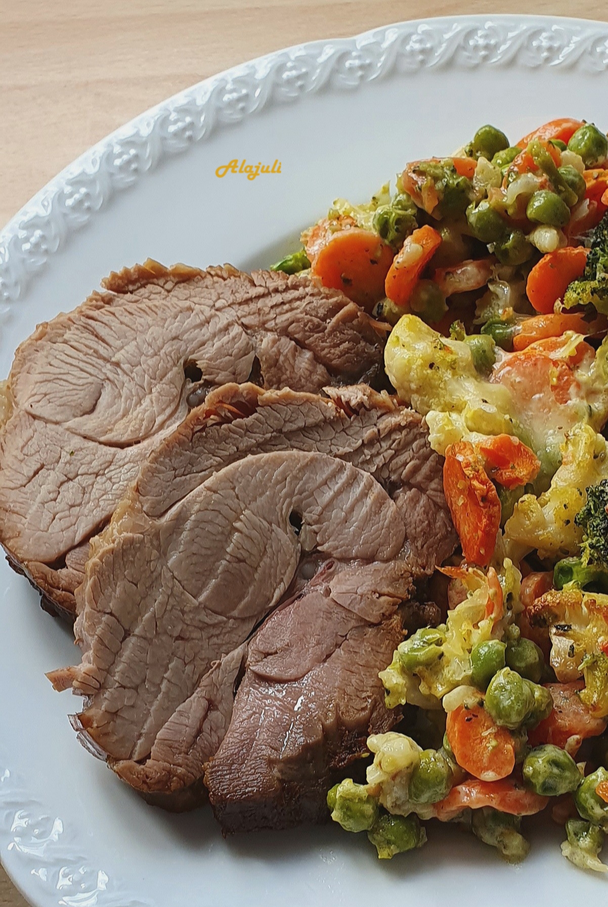 Egy kiolajozott sütő tálba helyezzük a roládot, öntünk alá kb. másfél deci vizet.