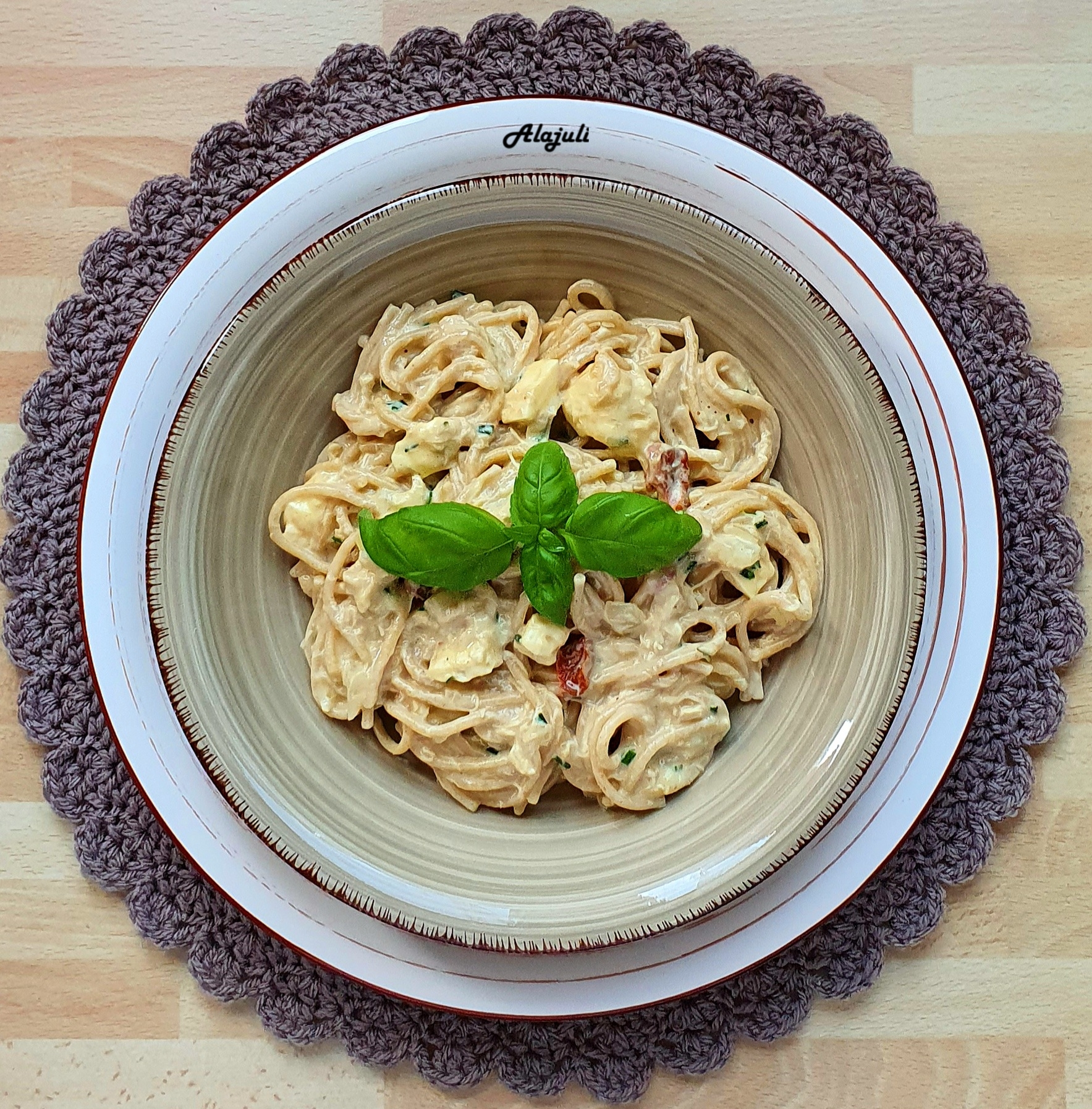 Finom krémes tésztát kapunk, amit akár még megszórhatunk reszelt sajttal is. A kislányom Parmezánt kért rá, de nélküle is finom. 🙂