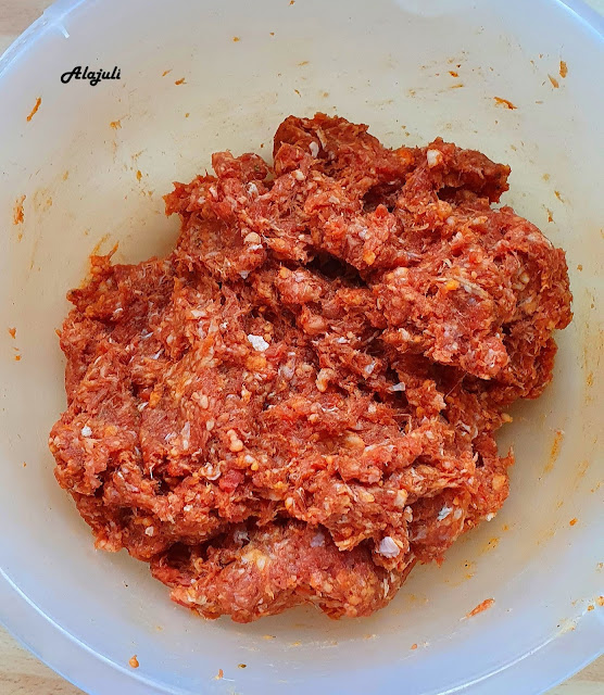 • 800 g zsírosabb darált sertéshús (comb, lapocka)