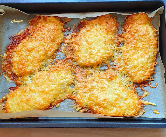 Megforgatjuk őket először a lisztben, majd a felvert tojásban, végül a reszelt sajtban. A sajtot kissé rá is nyomkodhatjuk.