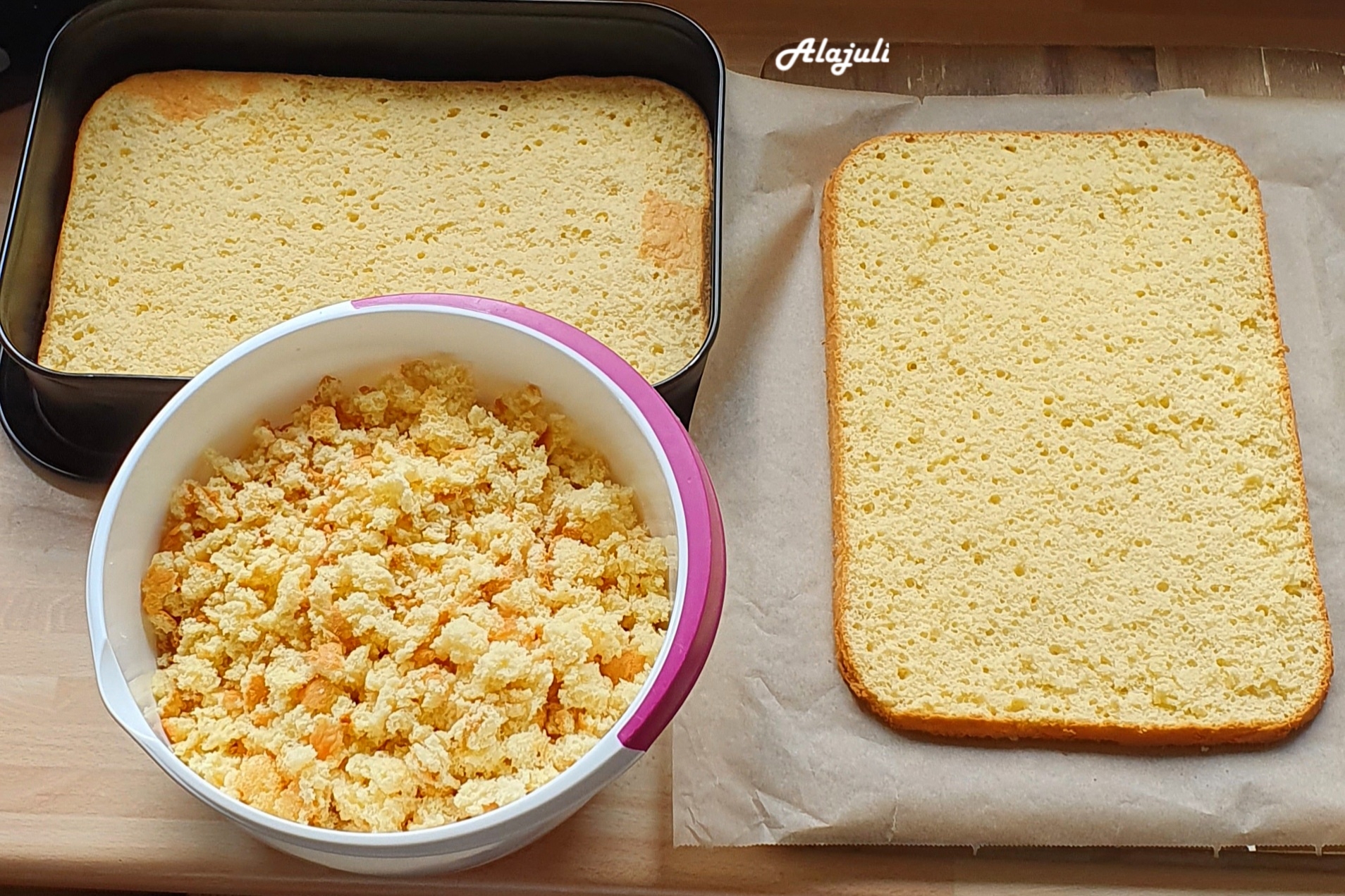 Először akkor vert le a víz, amikor megláttam, hogy kevés lesz a piskóta a töltelékhez, úgyhogy sütöttem még pluszban. (Így már pont elég volt. 🙂)