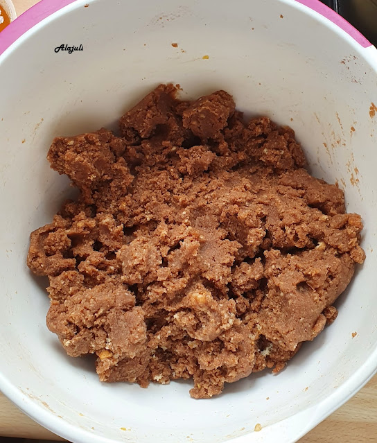 A szirup hozzávalóit felforraljuk, majd a töltelékhez adjuk. Alaposan összedolgozzuk.