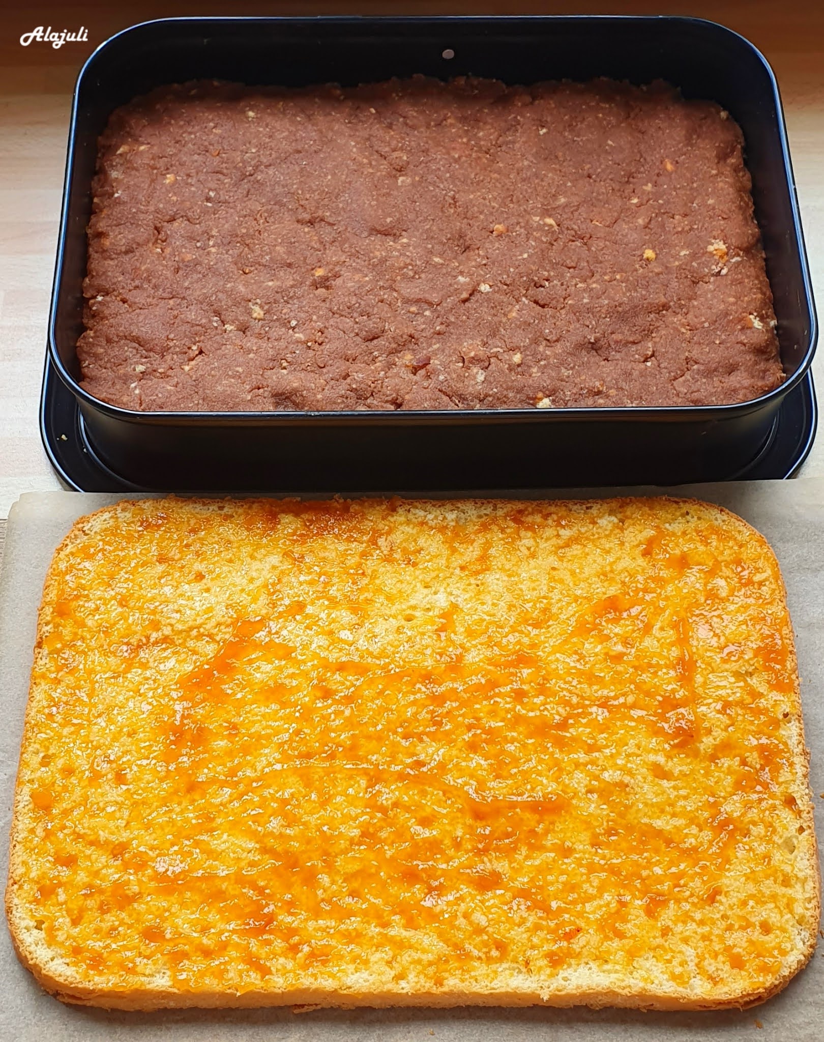 A töltelékbe való piskótát szintén a fentiekben leírt módon készítjük el, annyi különbséggel, hogy kb. 5 perccel tovább sütjük. Itt is végezzünk tűpróbát!