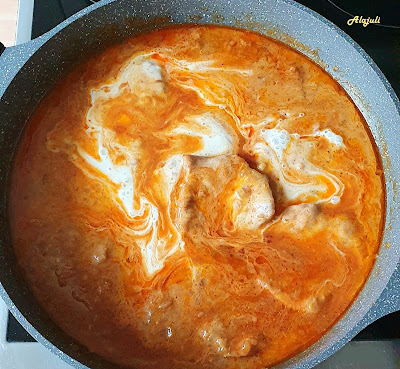 A végén hozzáadjuk a tejszínt és össze forraljuk.